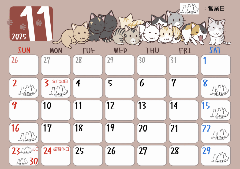 不定休となっていおります。営業日はカレンダーのロゴ付きの日です。確認よろしくお願いします。